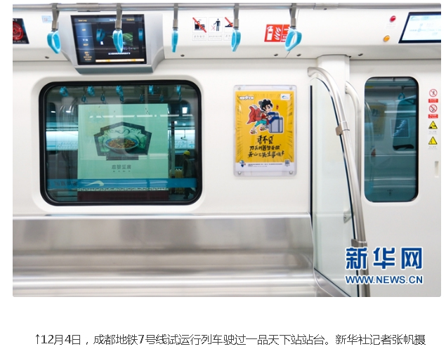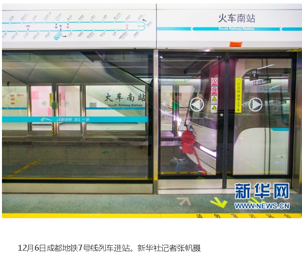 新華社:成地鐵七號線正式開通