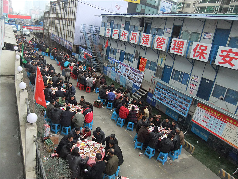 中鐵城投第二屆蓉城杯書畫攝影比賽作品選:《工地壩壩宴》 朝暉(中鐵二局二公司成都地鐵7號線4標項目部 )